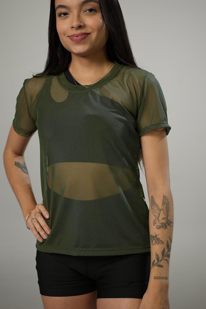 Blusa em tule leve e respirável, perfeita para treinos e atividades físicas. Possui modelagem soltinha que garante conforto e liberdade de movimentos.