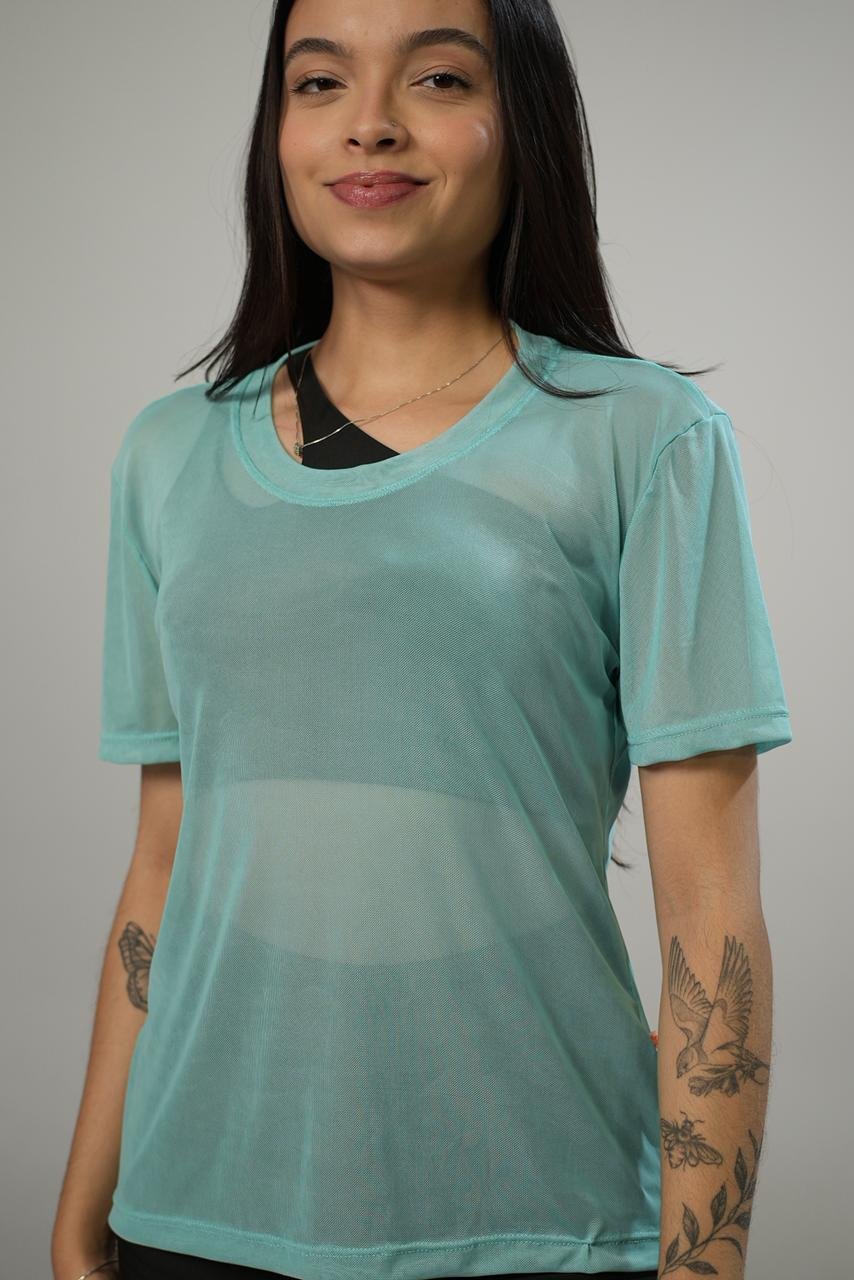 Blusa em tule leve e respirável, perfeita para treinos e atividades físicas. Possui modelagem soltinha que garante conforto e liberdade de movimentos.