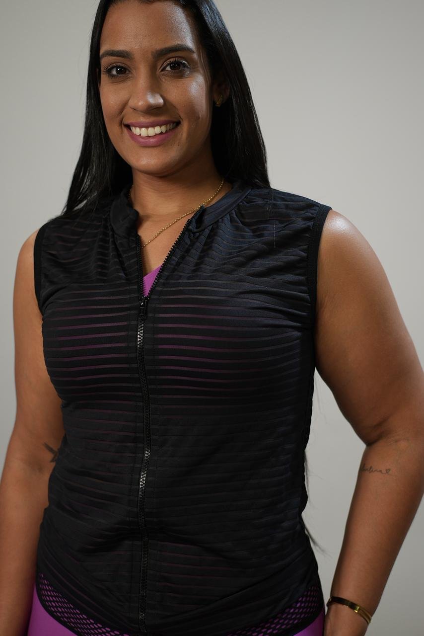 Colete em tecido leve e respirável, perfeita para treinos e atividades físicas. Possui modelagem soltinha que garante conforto e liberdade de movimentos, além de detalhes em listras texturizadas que dão um toque moderno.