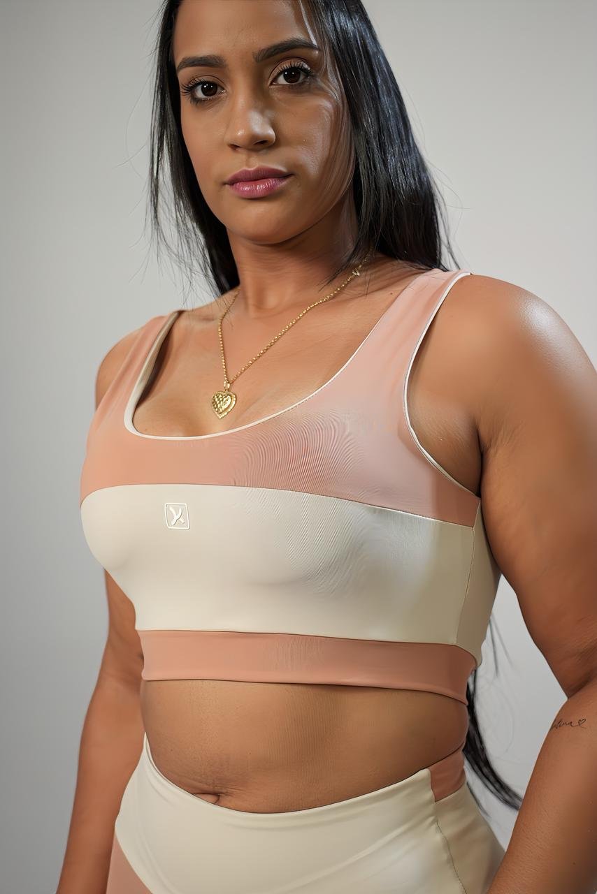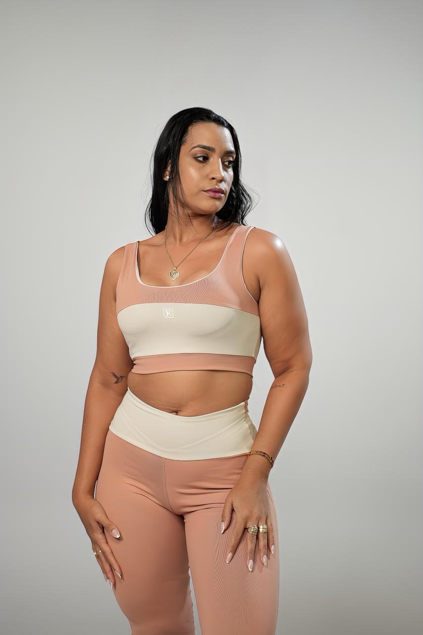 Conjunto Fitness Top e Legging Esse conjunto é composto por top de alças com recorte moderno e legging cintura alta, que modela e valoriza a silhueta. Confeccionado em poliamida com elastano, o tecido oferece alta elasticidade, toque macio e respirabilidade, garantindo conforto durante os treinos ou no uso casual.