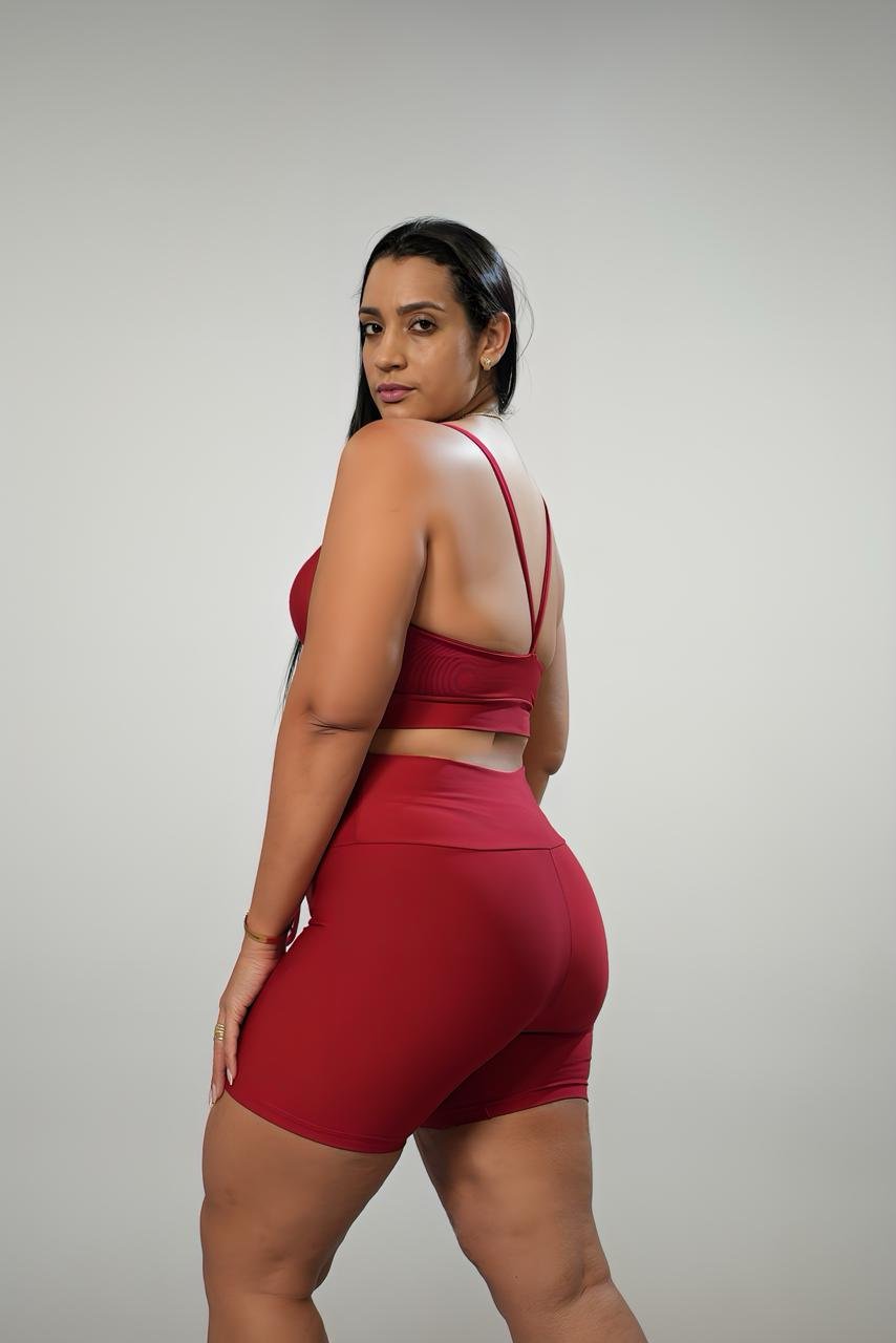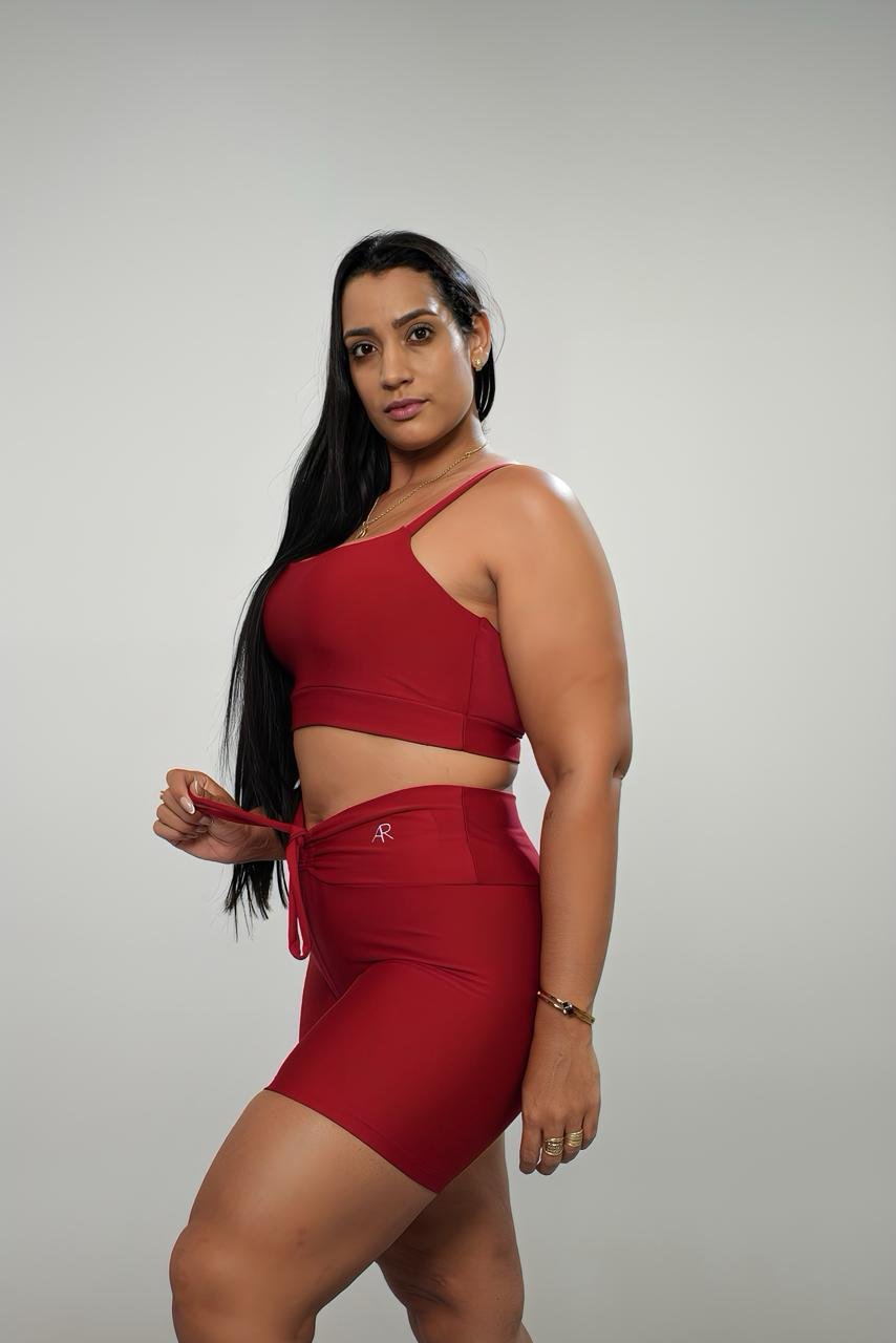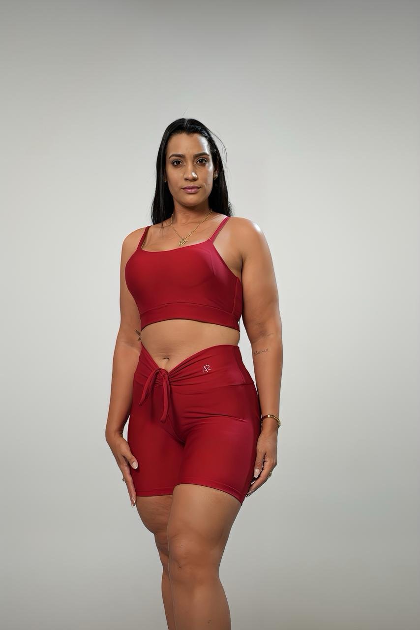 Esse conjunto é composto por top de alças com recorte moderno e short com detalhe de amarração, que modela e valoriza a silhueta. Confeccionado em poliamida com elastano, o tecido oferece alta elasticidade, toque macio e respirabilidade, garantindo conforto durante os treinos ou no uso casual.