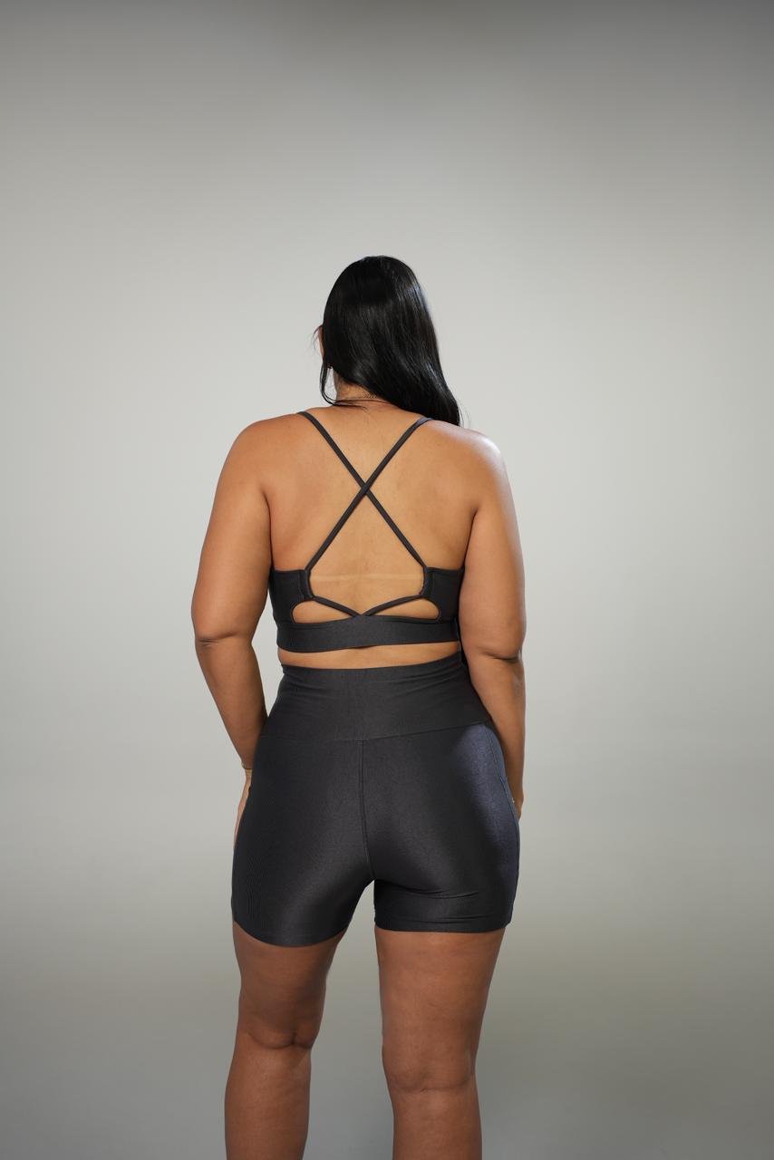 Esse conjunto é composto por top de alças com recorte moderno e short com bolso, que modela e valoriza a silhueta. Confeccionado em poliamida com elastano, o tecido oferece alta elasticidade, toque macio e respirabilidade, garantindo conforto durante os treinos ou no uso casual.