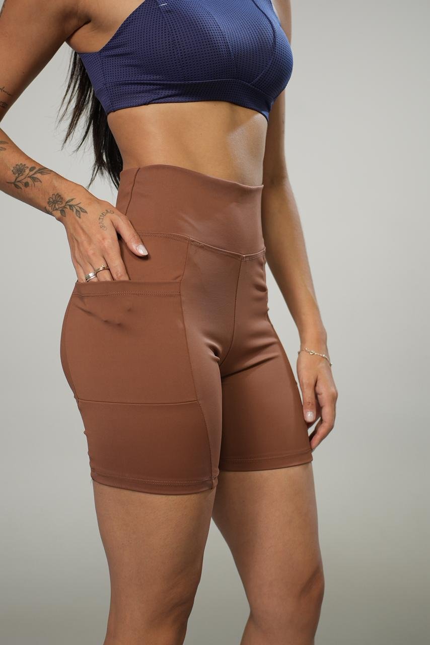 Short com bolso, que modela e valoriza a silhueta. Confeccionado em poliamida com elastano, o tecido oferece alta elasticidade, toque macio e respirabilidade, garantindo conforto durante os treinos ou no uso casual.