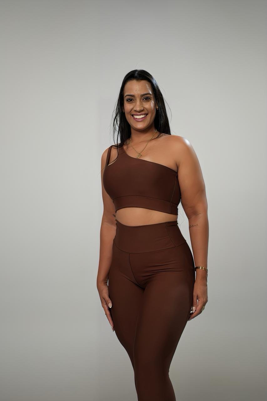 Conjunto Fitness Top e Legging Esse conjunto é composto por top de alças com recorte moderno e legging cintura alta, que modela e valoriza a silhueta. Confeccionado em poliamida com elastano, o tecido oferece alta elasticidade, toque macio e respirabilidade, garantindo conforto durante os treinos ou no uso casual.