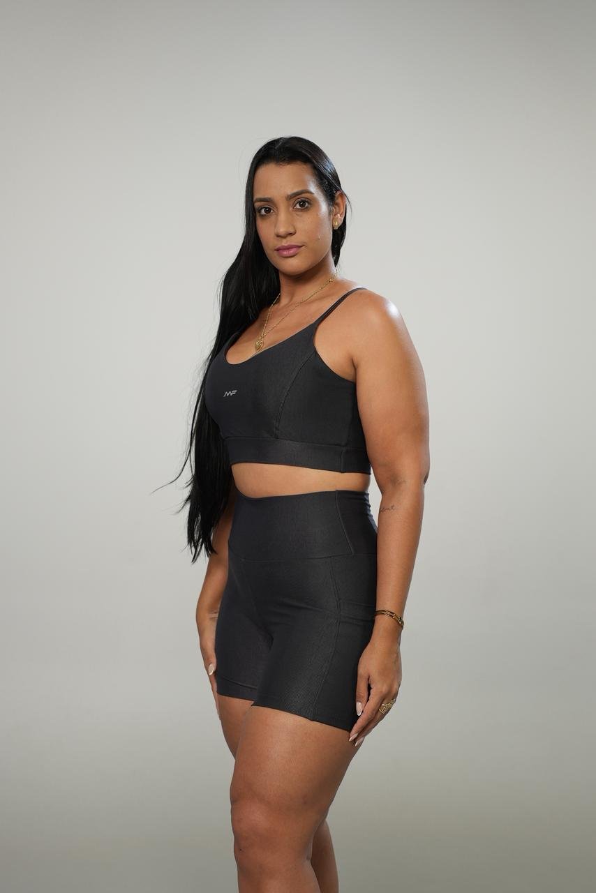 Esse conjunto é composto por top de alças com recorte moderno e short com bolso, que modela e valoriza a silhueta. Confeccionado em poliamida com elastano, o tecido oferece alta elasticidade, toque macio e respirabilidade, garantindo conforto durante os treinos ou no uso casual.