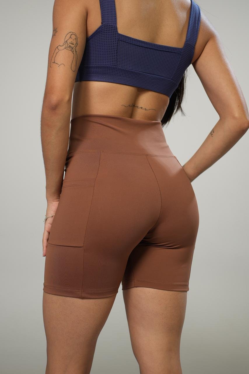 Short com bolso, que modela e valoriza a silhueta. Confeccionado em poliamida com elastano, o tecido oferece alta elasticidade, toque macio e respirabilidade, garantindo conforto durante os treinos ou no uso casual.